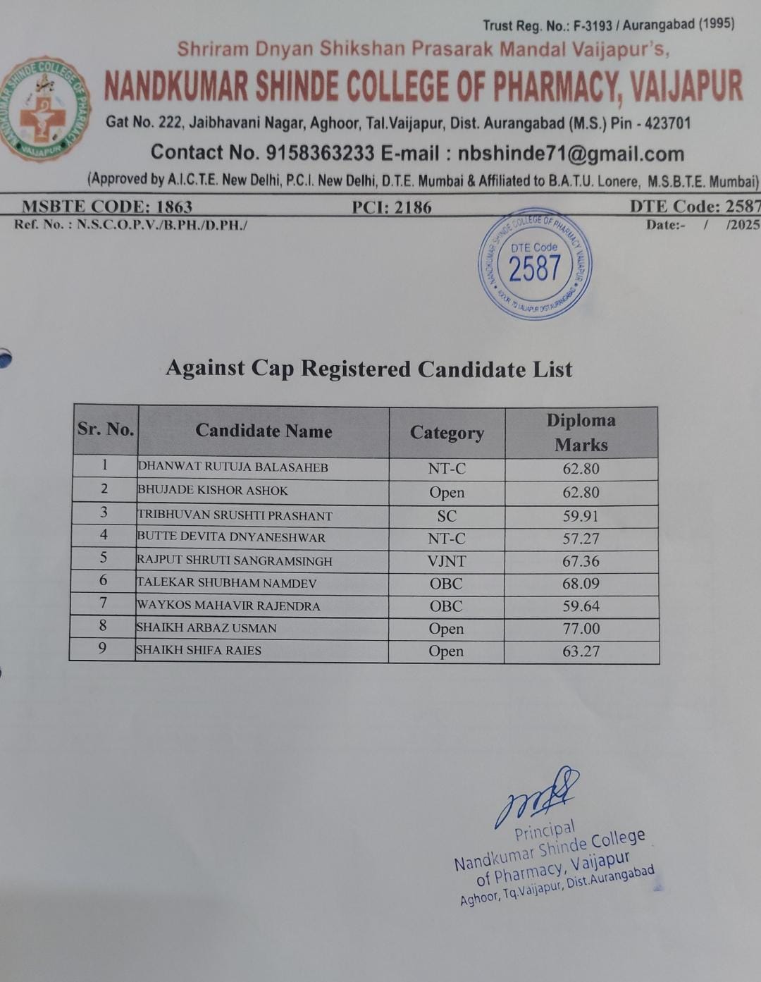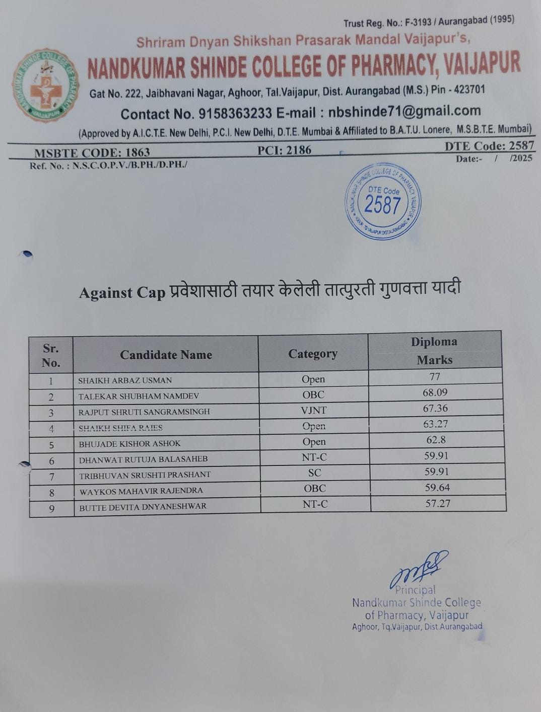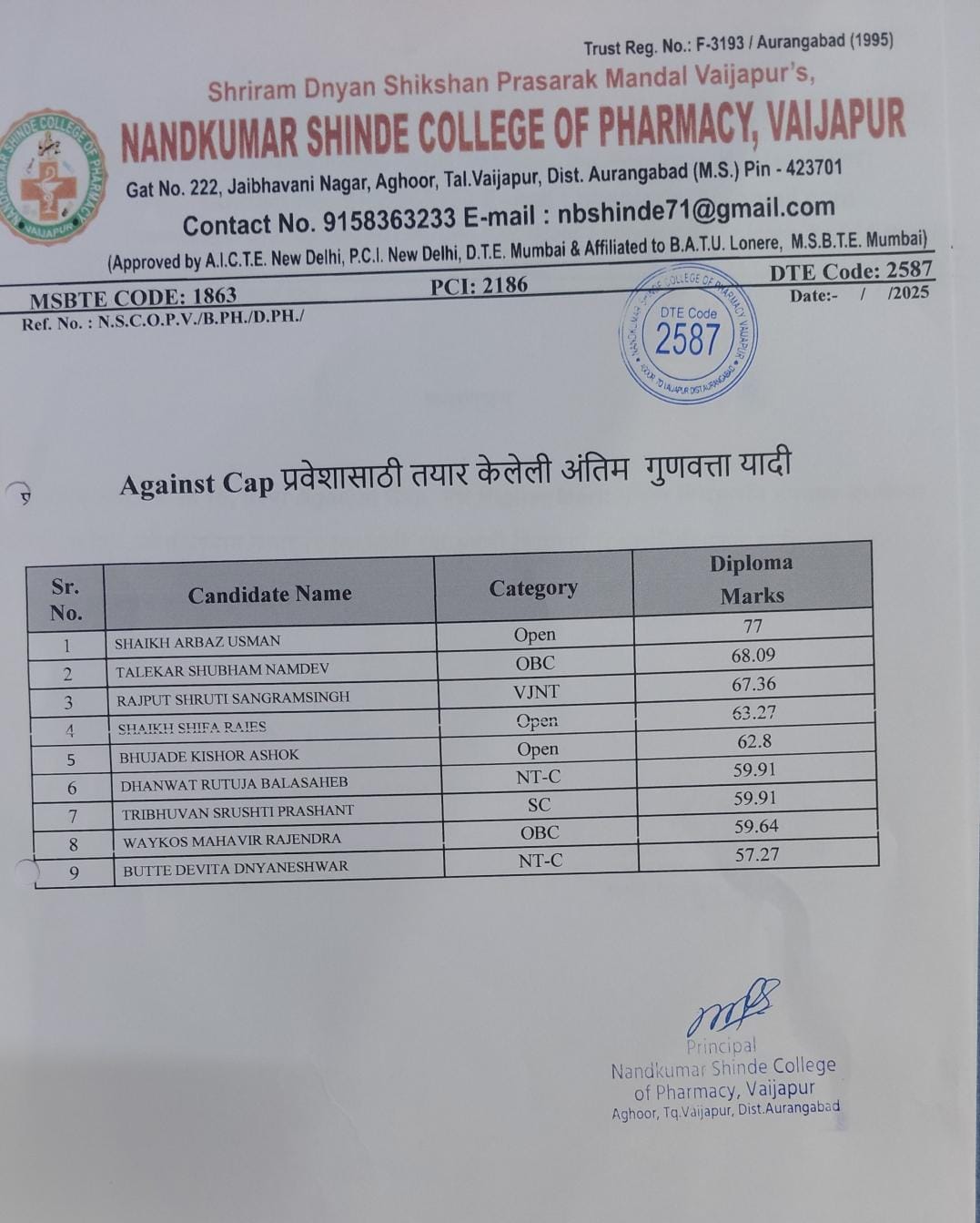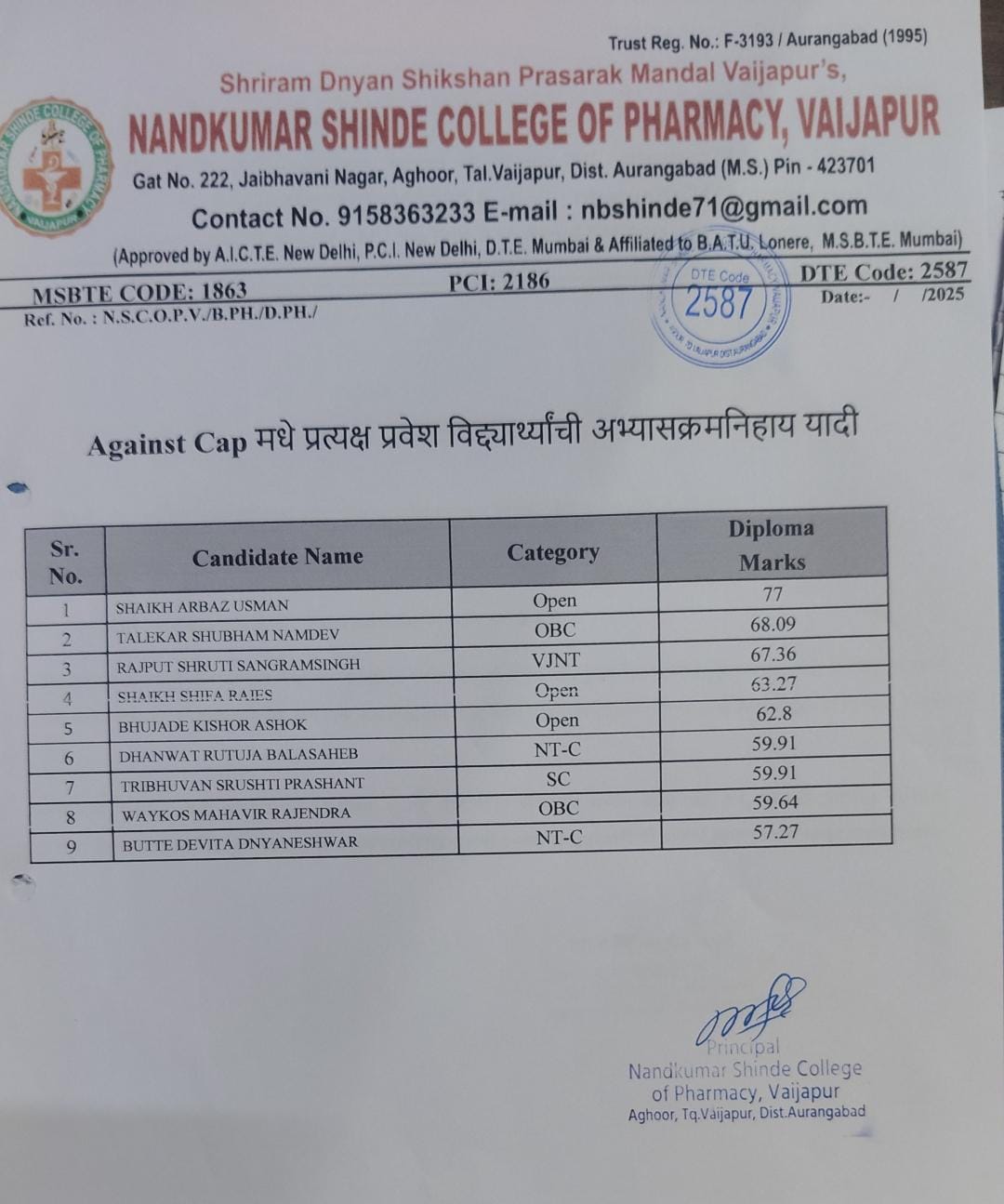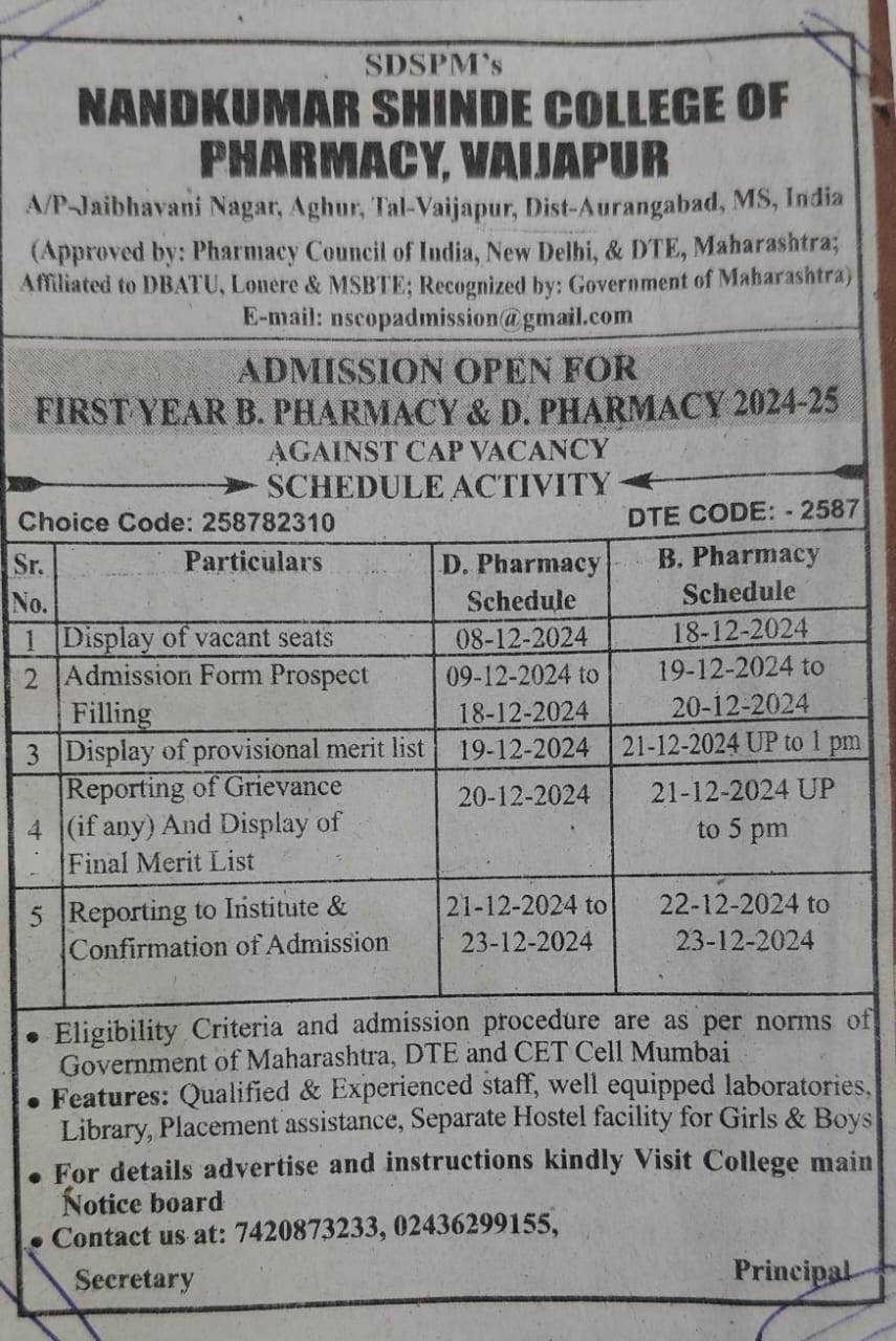 Explore the admission process, merit lists, and official notifications for the DSP program at Nandkumar Shinde College of Pharmacy.